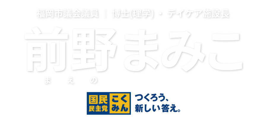 ひとりでも多くの方々に「前野まみこを選んで良かった」と言っていただけるよう、生まれ育った大好きな早良区から、誰もが納得できる政治を実現してまいります。